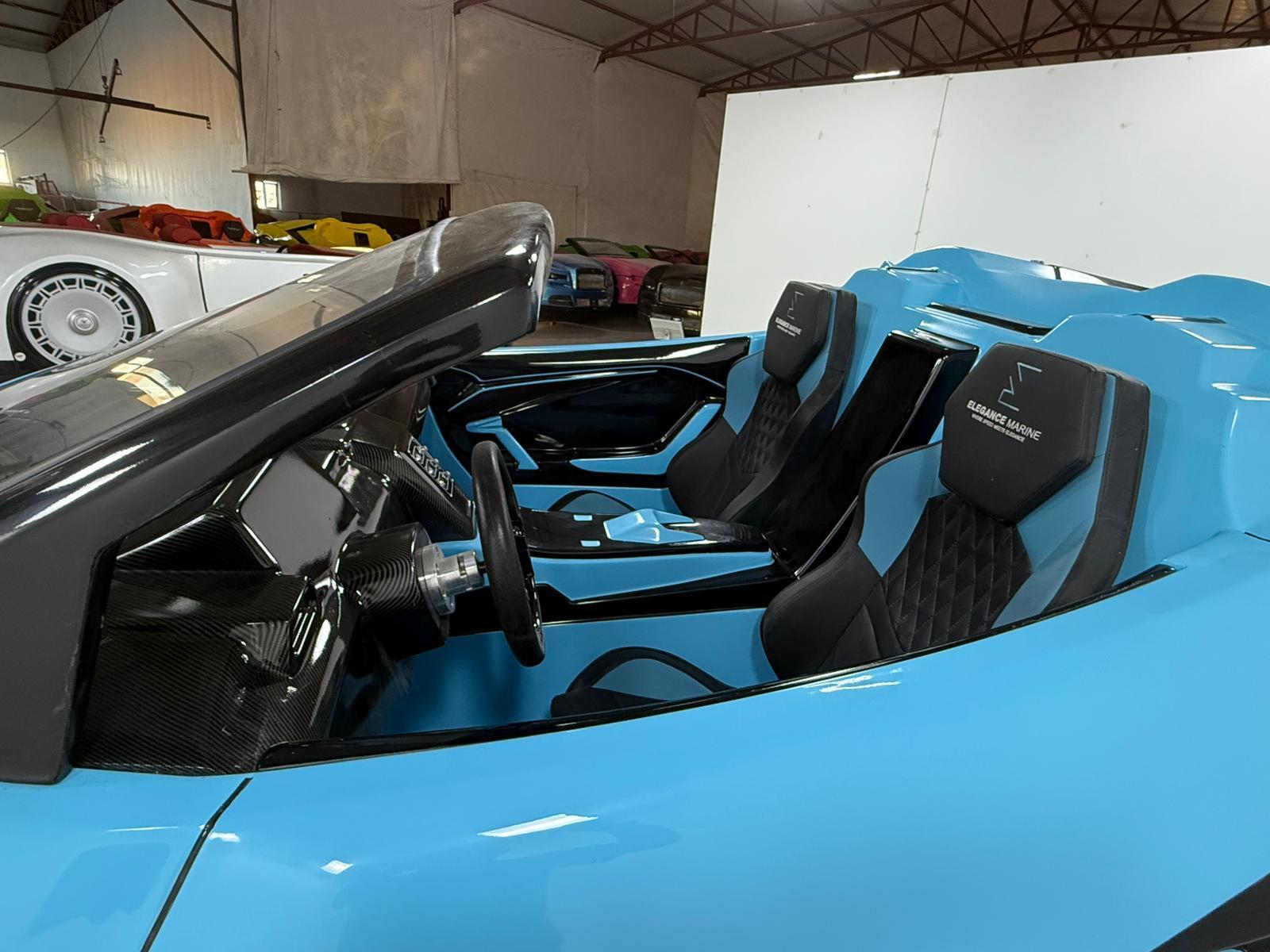 Elegance Marine Lambo — Supercar of the Sea Combining the aggressive lines of a supercar with the thrill of jet-drive propulsion, the Lambo is Elegance Marine's most striking model. Lightweight at just 375 kg, this 2-person speed boat is designed for pure performance and visual impact. 🔹 TECHNICAL SPECIFICATIONS • Dry Weight: 375 kg • Passenger Capacity: 2 persons • Hull: Single-colour gelcoat fiberglass • Hardware: 316L Chrome stainless steel 🔹 STANDARD EQUIPMENT Leather seats • Electrical control panel • Steering mechanism • Throttle pedal • Standard Elegance sticker • Bilge pump • Single-colour gelcoat hull • Front lights • Rear lights • Front/Rear U-cleat 316L Chrome • Drain plug 316L Chrome • Fuel filler cap 316L Chrome 🔹 OPTIONAL EQUIPMENT Custom logo sticker • Luggage spoiler • Dual colour • Waterproof sound system • Cup holder • Centre console • Life jacket compartment • Front/rear tie-down mechanism 🔹 NOTE Factory delivery price. Shipping and other costs are the buyer's responsibility. 🔹 BUILD YOUR BOAT Personalize your Lambo with custom colours, graphics, and optional comfort packages.
